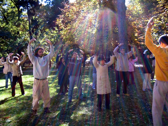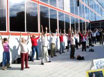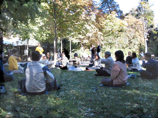 ![]() 法轮大法介绍会 | ![]() 参观者学炼法轮功 |