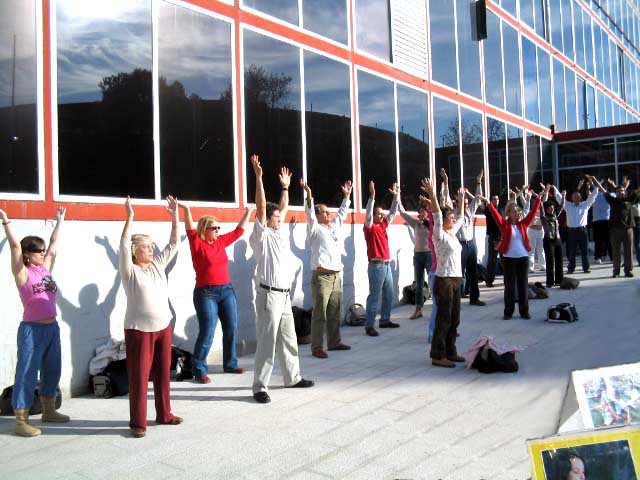人们对法轮大法于身心的巨大益处与功效产生了浓厚的兴趣,纷纷购买法轮大法书籍和教功录像带。同时人们对法轮大法在中国所遭受的不公与迫害表示不解与震惊。一位中年女士说:“江××怎么可以如此对待这些信仰真善忍的好人?这种侵犯人权的行为是不能容忍的,一定要制止。”一位教师对法轮功学员说:“你们有什么活动请告诉我们,我们会支持你们的。”还有一位带孩子的年轻母亲在听到在迫害真象时,眼泪止不住流了下来,领着她的孩子一起签字支持法轮功学员,呼吁停止迫害……在博览会上,学员们遇到西班牙环保部部长,当她听了关于法轮功的介绍后,很感兴趣,希望了解更多的资讯,并约好由学员寄给她更多的书面资料。