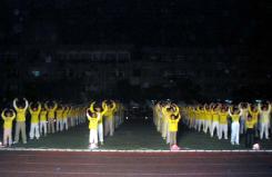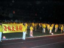 功法表演结束时,退休的王老师告诉全校师生及与会的家长和来宾说,这么祥和并使人身心健康的功法却在中国大陆遭到残酷的镇压,希望大家伸出正义之手,了解真象并支持法轮功学员,让修炼真善忍的好人能免于迫害,早日结束这场残酷的镇压。