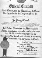 玛萨诸塞州参议院献上最美好的祝愿,祝不断取得成功。此褒奖状由参议院主席签署并由参议院秘书作证明和传递。