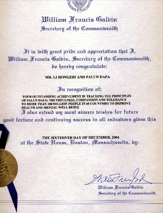 我,威廉-阁尔文,玛萨诸塞州州务卿,特此非常荣幸的祝贺及感激: