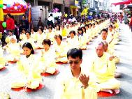【明慧网2004年12月24日】2004年12月18日,台湾台中县梧栖镇为社区总体营造“旧分驻所修复完工再现老街新风貌”举办庆祝活动,台湾法轮大法学会应邀设置摊位、演示五套功法和表演腰鼓阵,吸引许多民众观赏。
