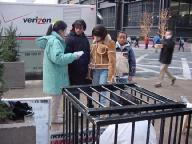有两个西人,来到学员演示酷刑的前面,听了学员向他们讲真象后,流着眼泪,要站在演示酷刑的学员旁边照相作为纪念。还有两个路人,看见酷刑演示,一个就开始严厉的指着演示警察的学员说,你怎么能把她们折磨成这个样子,另一个就要动手打那个学员。