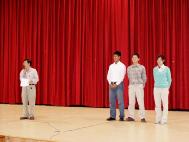 三位主讲人不时借着提一些小问题和同学互动,并赠送回答的同学一朵由台东学员自制的精致小莲花。同学们争相举手,气氛活泼热烈,但整体秩序却非常好。有许多老师说,学体育的孩子,要他们连续坐两个小时中间不下课,在平时是很难要求的,但这次周会学生的表现却让人刮目相看。活动最后三位年轻人以《转法轮》、《绝处逢生》、《为你而来》、《生命的答案水知道》等几本书赠送学校,并分别对全体师生致以最真诚的祝福,为此次温馨而特别的活动画下完美的句点。