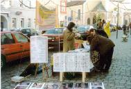 【明慧网2004年12月28日】2004年的12月4日,法轮功学员在德国费尔斯郝芬第一次举办了信息日,让那里的民众接触到法轮功并了解法轮功的真象。费尔斯郝芬是一个小城市,离帕绍约30公里远。在那里街上的人流虽然不像大城市那么多,不过小城市的人们往往不总是来去匆匆,很多人对法轮功还是颇有兴趣,放慢了脚步,停下来了解为什么学员们在这里摆出展台和展板。一些接了真象资料的过路人常常和学员们长谈,他们都想知道发生了什么,为什么法轮功修炼者会在中国遭受如此残酷的迫害