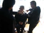 2003年2月28日,我被榆树市公安局非法关進榆树市看守所。在关押期间,有一次警察把我扣在铁椅子上长达17-18个小时。有一个自称是“长春一处”的恶警张征说:“我就是你们说的地狱恶鬼!”他用大皮鞋头踢我的下巴,并用烟头熏我,而且还用凉水往我的内衣里倒,用手掐我的肩膀。