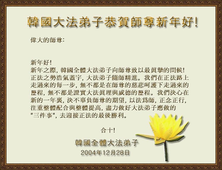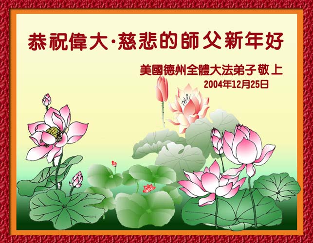 五年多的风风雨雨,五年多的坎坎坷坷,我们章丘大法弟子在师尊的慈悲呵护下走到了今天,值此新年来临之际,仅代表章丘大法弟子向伟大的师尊致以最崇高的敬意,恭祝师尊新年好!请师尊放心,我们一定勇猛精進,同化大法,溶于法中,救度众生,走好最后的路,把师尊的慈悲与浩荡佛恩传给众生。