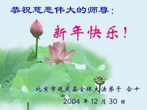 师父,在您的洪大慈悲与师恩浩荡下,哈尔滨大法弟子又坚定的走过了一年。请师父放心,在新的一年里,我们一定牢记师父的教导,承担起正法时期大法弟子所肩负的历史重任,走好正法進程的每一步,完成助师正法、救度众生的伟大使命,迎接法正人间的来临。