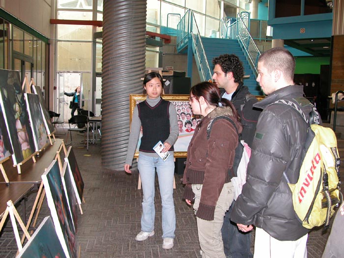 前三站在多伦多市政厅及另两所高等学府的画展也都取得了很好的效果。 汉堡学院由于良好的教育和培训质量, 曾被推选为北美12所最优秀的学院之一,有1万5千名全日制学生和5万5千名业余進修生,其中包括许多华人学生。此次画展, 正好碰上《大纪元》刊登社论《九评共产党》,画展上的华人学生和法轮功学员也围绕着中共在对法轮功的迫害中扮演了什么样的角色这个问题上進行了很多讨论。