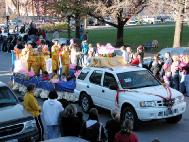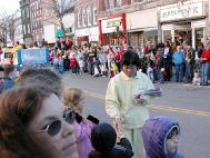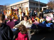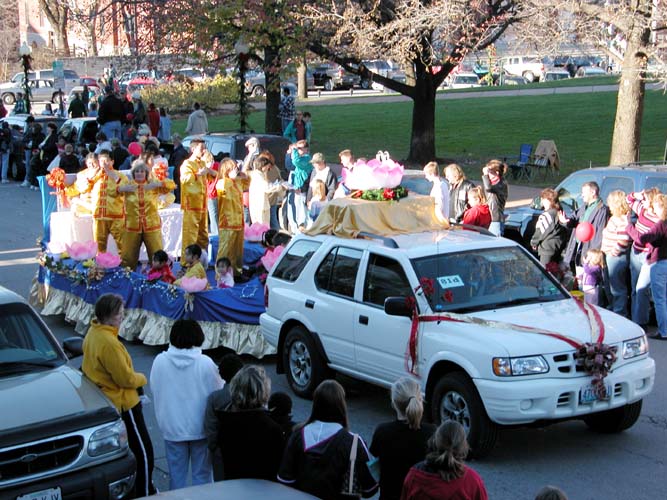 【明慧网2004年12月7日】2004年12月4日,美国密苏里州府杰费逊市举行盛大的圣诞游行,吸引了成千上万的观众。天气很好,冬日的暖阳给人温馨的感觉,杰费逊市的居民们聚集在街道的两旁兴致勃勃的欣赏由上百个风采各异的方阵组成的游行队伍。