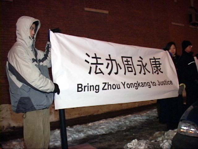 周豫说:“法轮功学员四年多来和平理性的活动已经使无数的谎言不攻自破,而在江泽民指示下成立的凌驾于法律之上的‘610办公室’,不仅在中国大陆残酷的迫害法轮功学员,更是把这种非法迫害延伸到了海外。江泽民,中央政法委书记罗干,中国公安部副部长、中央610办公室副主任刘京及中国公安部部长周永康是迫害法轮功的主要责任人。我们就是要用事实说话,揭露江氏集团迫害法轮功的非法行为,揭露他们对人民犯下的滔天大罪。”