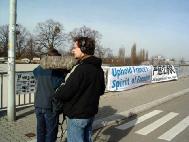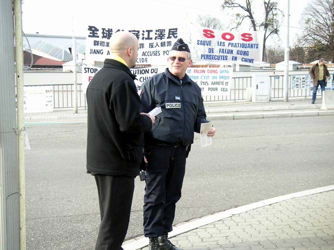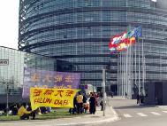 斯特拉斯堡是欧盟议会所在地,最近,为准备日内瓦联合国人权会议的召开,欧盟议会议员在斯特拉斯堡集会,讨论有关在人权会议上议题的准备,其中也有关于中国迫害法轮功的内容。来自法国、比利时、德国、英国、丹麦等国的法轮功学员得知消息后,来到欧盟议会前请愿。学员打出的横幅上写着“维护法国自由精神”,呼吁议员们关注对法轮功的迫害最近延伸到法国的严重事件。欧洲议员内莉-梅斯女士和戴尔拉巴先生来到新闻发布会表示支持。