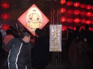 为了抓住这有利时机向广大人民群众讲明法轮功事实真相,大法弟子于元宵节的晚上走出家门,汇到百万观灯的人群中,在人流经过的彩灯旁、道路边、路灯杆上,分别挂上了一幅幅的大法真相条幅。