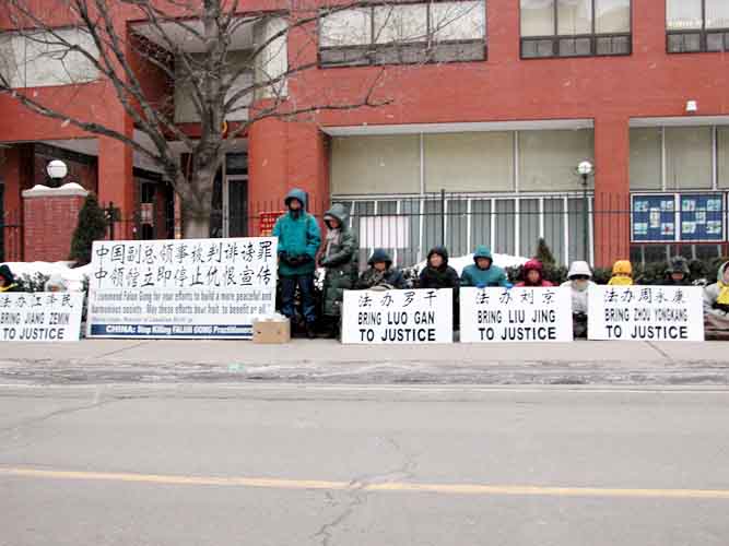 另一位法轮功学员林小姐说,今天是情人节,本来要和男朋友共度节日。但因为最近在中国大陆对法轮功的镇压加剧,所以也赶到中领馆参加请愿活动,声援国内的大法弟子。林小姐还说,我们虽然在海外,但我们海内外的法轮功的心愿是一样的,就是用和平理性的方式要求中国当局停止迫害法轮功,要求法办迫害法轮功的凶手,同时希望人们能明白不要追随江氏集团迫害法轮功,任何人迫害法轮功都要承担责任,因为历史是公正的。