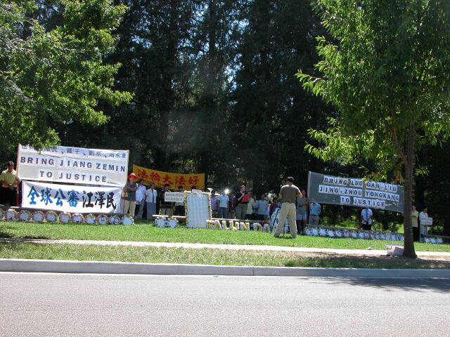 纽约法轮功学员们表示, 原中共中央总书记江××是这场镇压的策划和命令者,江出于对上亿人的炼功团体和他的创始人的嫉妒和胆虚,发动了这场荒唐而又灭绝人性的镇压。而罗干(中央政法委书记,公安部副部长)、刘京(「610」办公室副主任)、周永康(公安部部长)则是具体实施江××灭绝法轮功团体之政策的帮凶。