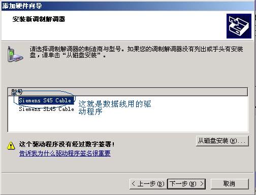 1. 就是在WinXP安装6618的驱动程序时,在“添加硬件向导”-“安装新调制解调器”中,当选择“从磁盘安装”后,应选“Siemens S45 Cable”后再点“下一步”,而“Siemens SL45 Cable”则是红外线使用的驱动程序,与使用数据线的手机无关,其它步骤相同。
