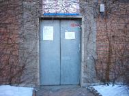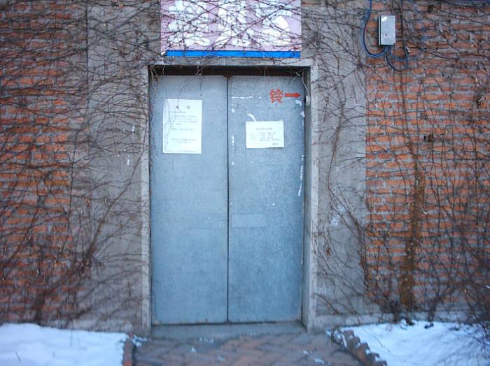 ![]() 沈阳市张士劳动教养院接见室入口小门(照片上方被植物挡住的红底白字“接见室”牌子依稀可见,门上贴着“春节”前后接见时间安排) |