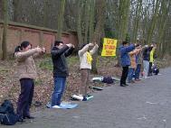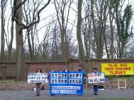 图片报道:荷兰法轮功学员中使馆前要求法办江罗刘周