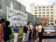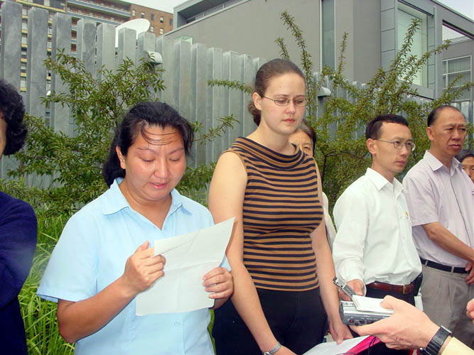 | 悉尼中领馆前的新闻发布会 | 澳洲公民梁丽莎在新闻发布会上发言 |