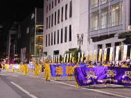 游行结束时,一位中国女士走过来与学员交谈说:真没想到有那么多人炼法轮功。你们的队伍真壮观,我认为是所有游行队伍中最漂亮的。她问学员:“你们的跳舞队是从外面请来的吗?那些头饰、服装、彩灯、花车真漂亮,花了不少钱吧。这钱是从哪来的?”