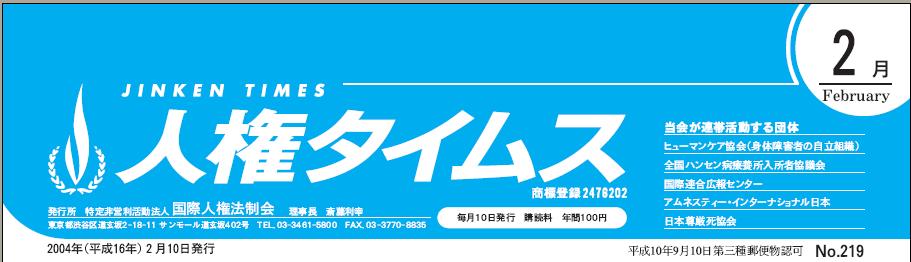 在今年的第二期中,刊登了日本市民支援联谊会代表熊村贵志雄的题为“诉江审判之路――全球公审江泽民大联盟成立”的文章。他在文章中,从由于去中国讲真相而受监禁一年半的金子容子在中国受到的非人折磨谈到江氏集团为了企图铲除法轮功而耗费了国家的大量资源并且做出种种卑劣的表演。他在文章中呼吁大家不分肤色,性别,年龄以及社会地位,为了早日结束这场残酷的迫害,请大家一起行动起来,将迫害法轮功的元凶江泽民早日送上审判台。