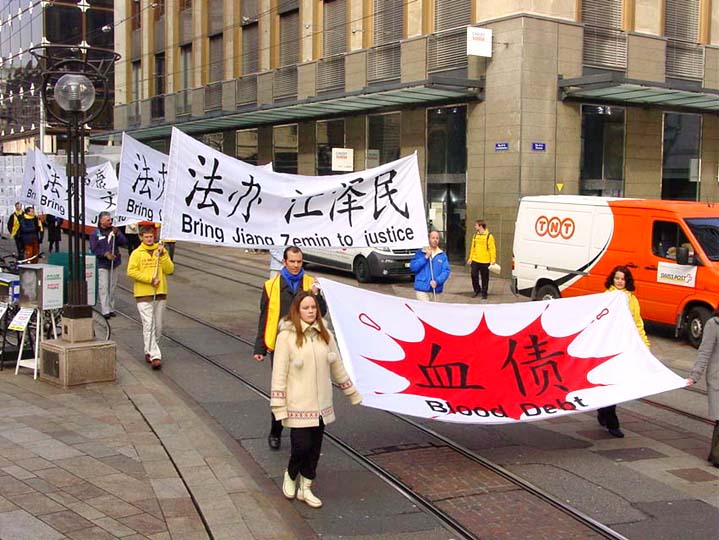 | 游行队伍 | 游行队伍 | 法办江×× |
