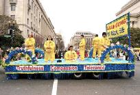当法轮功队伍通过主席台时,主持人热情地向观众介绍:“法轮功以真善忍为原则,是一种身心修炼之法,自法轮功1992年传出以来,已遍布全球60多个国家,让我们以热烈的掌声感谢他们精彩、优美的表演。”