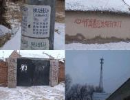 东北某农村的大法弟子将村里许多地方挂上条幅,并在墙上喷写真象标语。