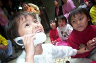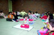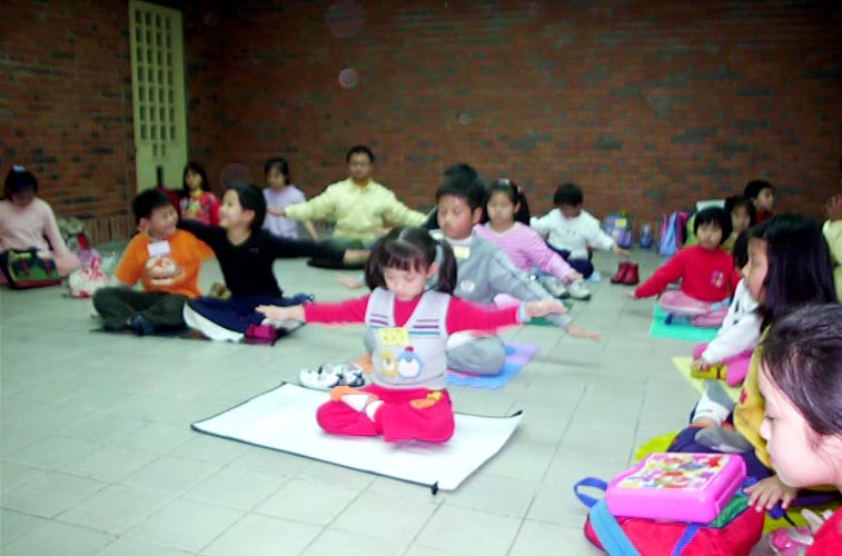 有感于法轮大法在中国大陆受到江氏集团操控的媒体造谣污蔑,连很多小朋友也被蒙蔽,甚至仇视法轮功,许多学校以开除学籍、强迫签名污蔑等手段迫害在学的法轮功学员。于是美华姐姐带小弟子们一起打电话给大陆同胞讲真相,希望能帮助制止迫害。在美华姐姐的引导下,大家一起对着电话唱歌、讲真象。有的小弟子还会抢着电话要讲真象呢!小洁藉由电话向大陆民众说:“希望你能告诉那里的公安,叫他们不要迫害法轮功学员。”年纪最小的君显也对着电话喊出:“法轮大法好!法轮大法是正法!”