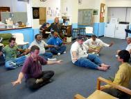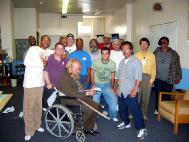 当学员们在做准备工作时,一群人已经集合在一起等待参加。从一开始,我们就注意到听众们很感兴趣,并很注意听讲。在介绍大法的时候,他们很专心,不住地点头,偶尔也评论几句。期间,当有人刚刚进来并弄出声音时,大家就会要求他们轻一点儿。结束时,他们还问了一些问题。总的来说,他们的理解和领悟是相当高的。在介绍结束后,经理讲述了他是多么感激我们来办这个学习班,他认为这些人通过修炼法轮大法会得到一次很好的自我提高的机会。他说无家可归是绝望导致的,而绝望的根源在于不好的行为和精神状态。凡事皆有因。他说如果在思想上能改变和提高,那么他们就能真正地从总体上提高自己。