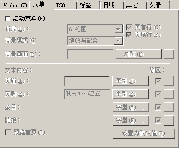 不要忘了在Nero中创建VCD编译属性的设置,我们再回顾一下:打开Nero=〉点击“文件”=〉点击“新建”=〉选择“视频光盘(Video CD)”=〉