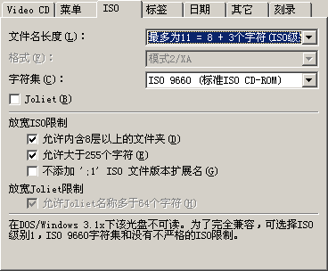 如果需要制作“VCD、电脑两用光盘”,需要把所有需要追加的数据文件,文件名称更改为7个字符以内,文件扩展名更改为3个字符。比如这个文件名称是:freegate5.exe,就需要更改为freeg.exe;比如这个文件名称是:zx.html,就需要更改为zx.htm 。所有需要追加的数据文件需要逐个检查,有不符合标准的就需要进行上述改动。
