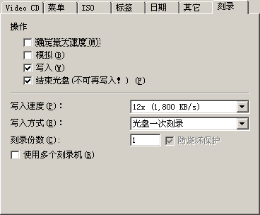 3、刻录速度:刻录光盘的速度的不是越慢越好,也不是越快越好,而是需要根据你购买光盘的质量来选择一个合适的刻录速度。我根据自己购买的低价光盘,进行刻录速度测试,发现用12速刻录出来的光盘播放的结果非常流畅,而用16速刻录出来的光盘播放结果是个别光盘有播放中停顿的现象,所以我选择用12速刻录。