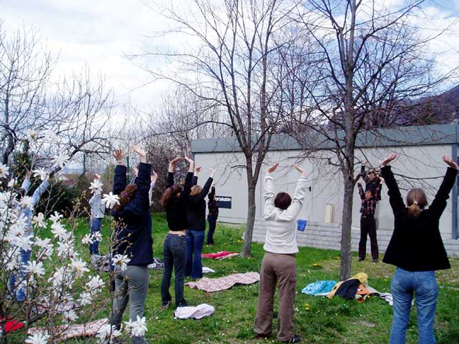 现在,在格勒诺布尔市的炼功点上,已经有这个学校的学生和法轮功学员们一起炼功了。