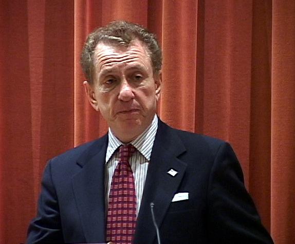 法轮功学员斯嘎乐特(Yvette Scarlett)在参议员斯贝克特走出礼堂时,向参议员提出联合国将对中国政府侵犯人权提出议案一事,希望通过他的影响,在议案加进呼吁中国政府停止迫害法轮功。参议员让他身边的法律助手瑞诺兹(William Reynolds)先生帮助处理。助手表示他将与国务院联系此事。