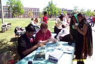 为了这次活动,当地的法轮大法学员在他们热心的朋友们帮助下,准备了三百多个彩纸莲花及毛笔书写的“真善忍”字条。当天,几乎每个来到法轮功学员展位的人都很欣喜的接过纸莲花及法轮功介绍资料。其间也有人来询问法轮功在中国无辜受到迫害的情形。同时,许多人要求学员教他们叠莲花。