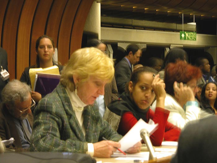 【明慧网2004年4月2日】正在日内瓦举行的第六十届联合国人权会议已经进入第三个星期了。来自瑞士、澳大利亚、美国、加拿大、法国、德国、奥地利和爱尔兰的法轮功学员还在陆陆续续的来到这里,向各国的联合国代表,非政府组织,及各界人权人士讲真象。经过全球大法弟子几年来的坚持不懈的深入讲清真象,很多人都已经了解法轮功在中国被的情况,他们主动索取学员手中的真象资料并热情的说“法轮功,法轮功好”。也有很多人在人权会议开幕时看到了我们学员的游行和请愿活动,并从那开始知道了法轮功。一些非洲国家的代表和非政府组织,经过与学员的交谈,了解了法轮功受迫害的情况,一些人表示,回去后要向他们国家的有关机构反映。其中一个非洲人权委员会成员国家的官员在听了真象后说,他没有办法决定他们国家的投票决定,但是如果他昧着良心投票,他的良心会非常不安。