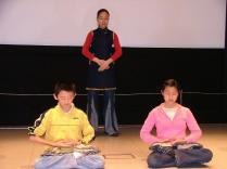 在室内的小会议厅里,一位西方学员向来宾介绍了法轮功是一种源于东方的非常古老的修炼功法,它既能强身健体,又能使人类的道德回升,人们遵循着“真善忍”原理去修炼。讲演之后,两名小弟子演示了五套功法。来宾们兴致勃勃地索取资料,并询问炼功地点。