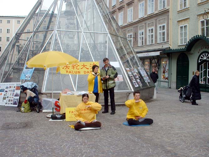 这一天虽然天气很冷而且刮着风,但很多来自奥地利本国和意大利、德国、捷克、英国等地的人们了解到了江氏集团对法轮功的残酷迫害。人们的心灵越来越打开了,越来越想了解大法的真象。
