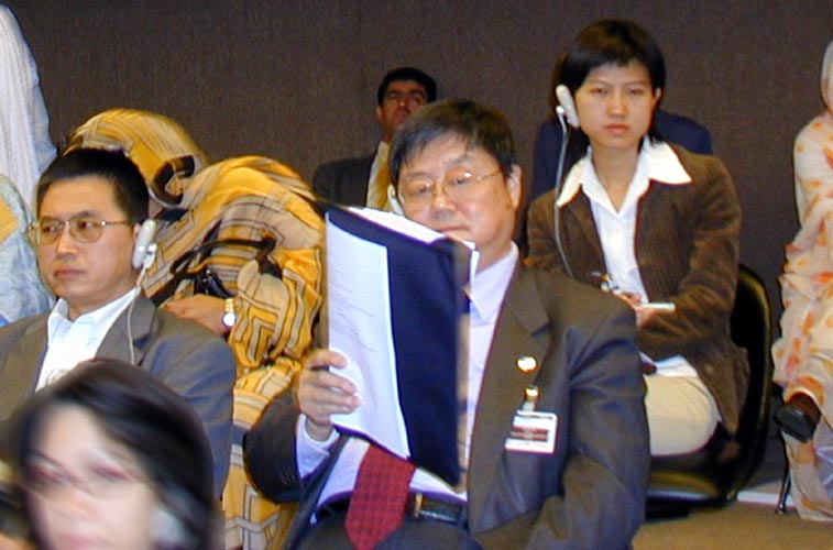 王渝生坐在联合国人权大会会场的非政府组织席位上,