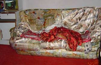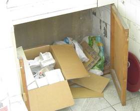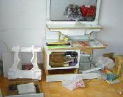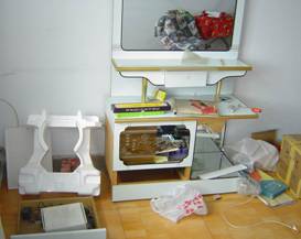 2004年4月21日下午,李明艳突然失踪,疑遭绑架,现不知下落。失踪两天后发现李明艳的两个住处均被不法人员查抄:一处位于连山区水泥街道隆化社区宏运小区3号楼三单元8号(五楼),屋内所有大法书籍和贴在石英钟后面的一万一千元左右的存折被抄走,书架内的书被翻得乱七八糟(如图1所示)。另处位于中央大街地工小区的5号楼(原李明艳家庭住址),则又遭到连山区部分匪警的再次掠夺,家中唯一值钱的就是价值4千多元的台式电脑和一台彩色喷墨打印机,已全部被掠走,同时墙上贴的师父法像也被摘走,屋内再次被翻得一片狼藉(见图2、3、4)。