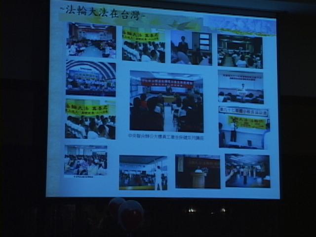 播放新人相片中间穿插大法真相投影片并以大法演奏音乐为背景音乐