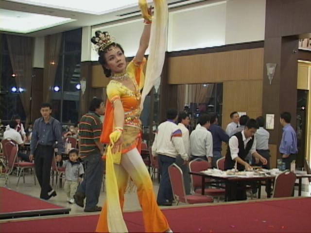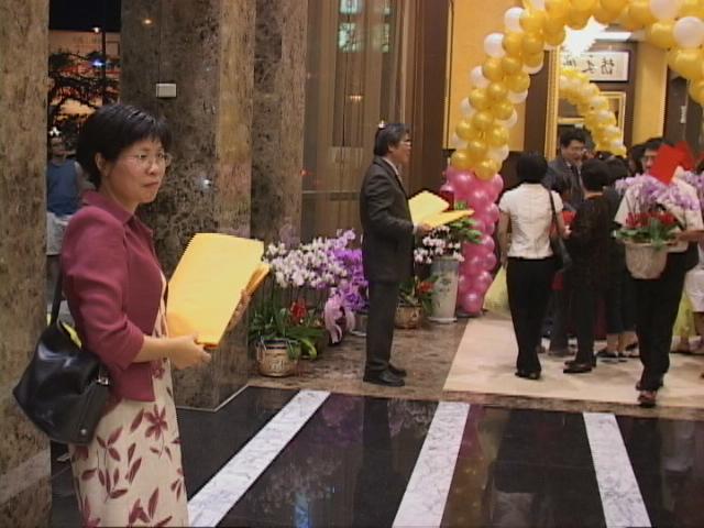 宴客当天由于我们只宴客20桌左右,餐厅以活动滑墙将我们与其他食用欧式自助餐的客人隔开,一直到大法弟子上台表演大法舞蹈“福”后奇迹发生了,当天表演后受到来宾报以热烈掌声,餐厅的经理觉得节目特别,主动提出将阻隔用的活动滑墙推开,希望我们大法弟子表演给全餐厅的客人观看,当天讲真象的对象由20桌演变到全餐厅,全场约400人左右,我们意识到了这是师尊的安排!节目表演完毕后原本略有微言的母亲也询问怎么没安排多一点节目,节目太少了!在散席时我们也发放着真象资料给全餐厅的客人!原本以为只是对着参加宴客的亲友讲真象却没想到整个餐厅的客人都听到了真象,使更多有缘的人更了解大法!
