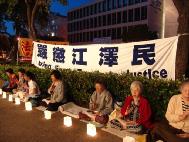 4月24日,香港大法弟子在中联办外进行和平请愿,纪念4.25五周年。