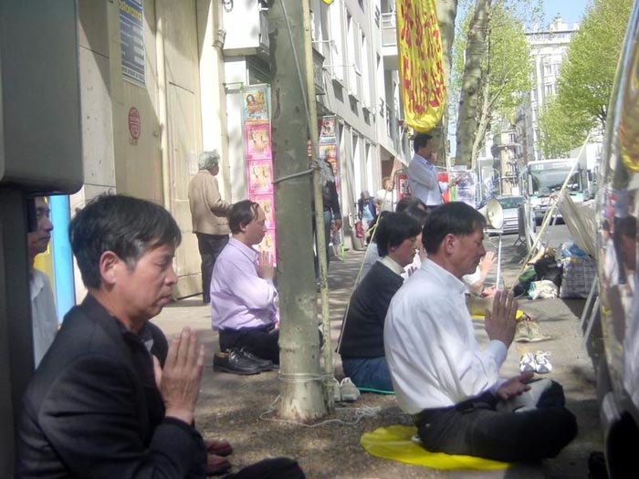 图片:纪念“4.25” 法国大法弟子中领馆前讲清真象