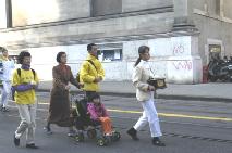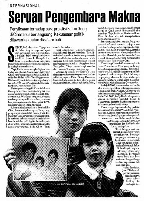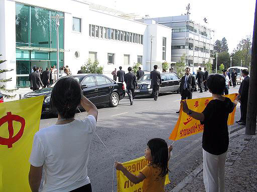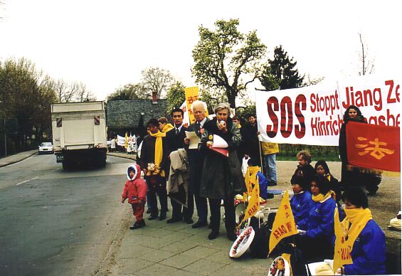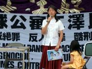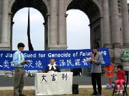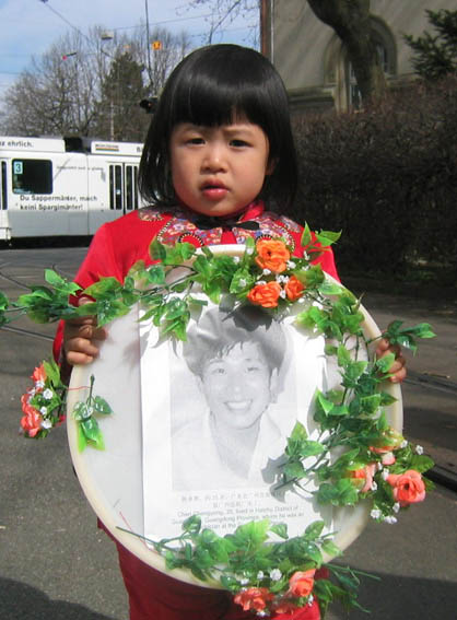 (法度):两年来我和妈妈周游了37个国家。妈妈变卖了家中所有的家产到世界各地奔波呼吁制止迫害,小法度不但洪法和参加游行,向好心的人发真象资料;我还举着爸爸的遗像到过中国驻瑞士的大使馆前讲真象、在和平请愿中我还举起了“真、善、忍”的横幅。