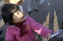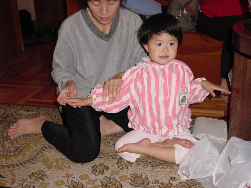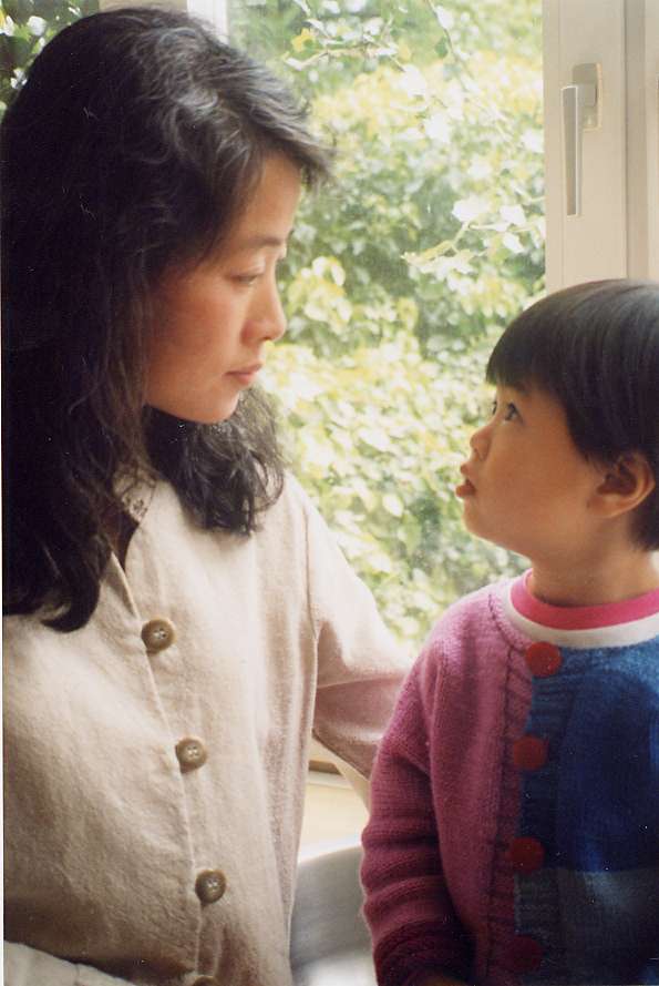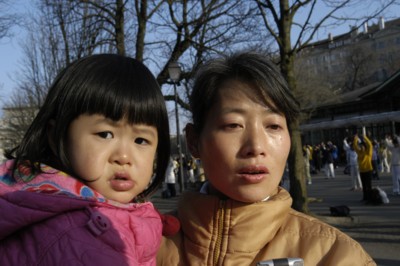 (法度妈妈):你跟妈妈一起到世界各地去,把江泽民这个大坏蛋迫害法轮功、害死你爸爸的真象,告诉全世界的人,让他们帮我们一起来救救这些小朋友的爸爸、妈妈好不好?