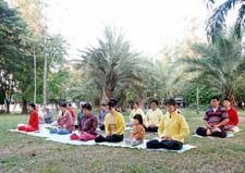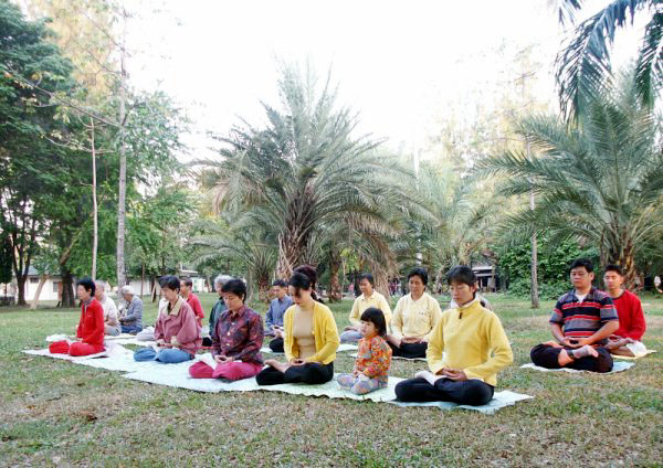 (镜头):学法炼功讲真象(配普度音乐、炼功音乐)