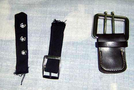 | 现场中发现的穆琴衣服领上被撕掉的带和皮兜上的带夹 | |
