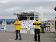 联合国人权会议前夕,大法弟子雨中讲真象(图)